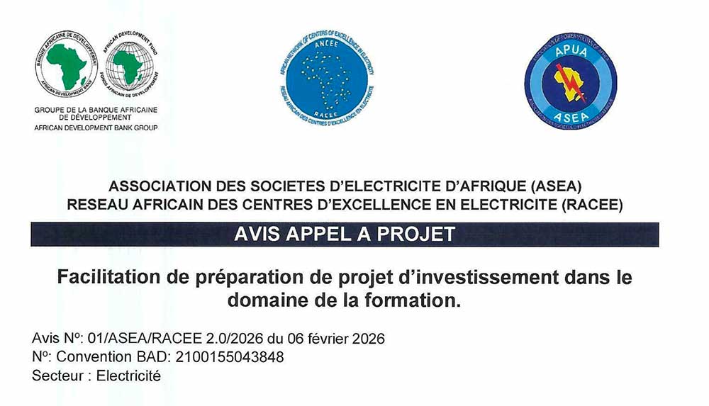 Avis appel à projet / Facilitation de préparation de projet d’investissement dans le domaine de formation 6 février 2026 Actualité, Appel à projets Avis N° : 01/ASEA /RACEE 2.0/2026 du 06 février 2026 Avis appel à projetsTélécharger Partager