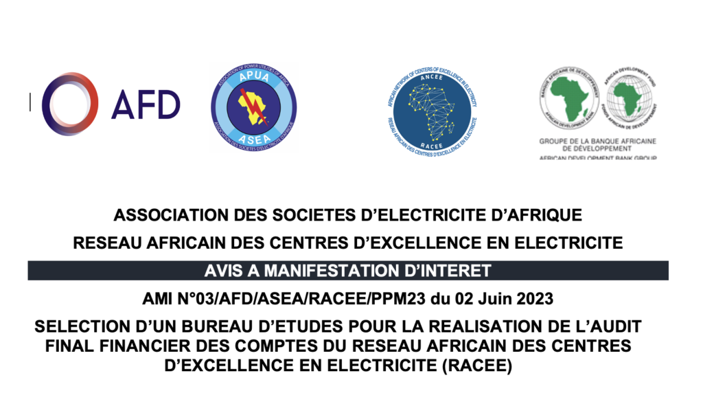 AVIS A MANIFESTATION D’INTERET / SELECTION D’UN BUREAU D’ETUDES POUR LA REALISATION DE L’AUDIT FINAL FINANCIER DES COMPTES DU RESEAU AFRICAIN DES CENTRES D’EXCELLENCE EN ELECTRICITE (RACEE)